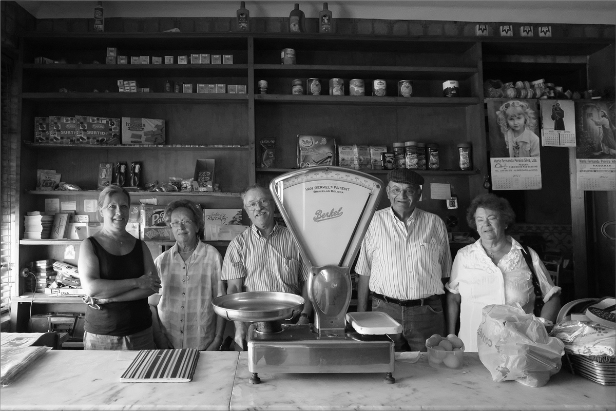 La balance en vedette, les gens de ta terre qui posent très simplement, les calendriers religieux à l'arrière-plan, une boutique comme on n'en voit plus beaucoup, j'aime cette photo