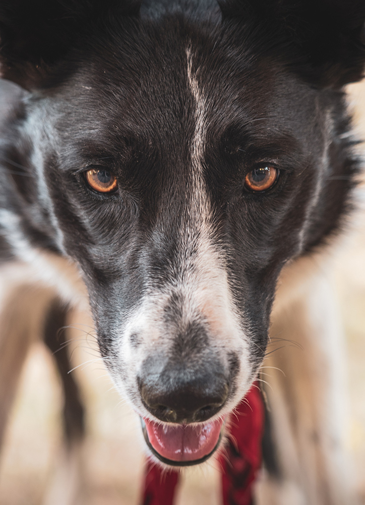 A mon humble avis, il faudrait couper la photo au niveau des oreilles juste au dessus des poils blancs pour amener le regard sur des points forts. Après le regard du chien est perturbé par les multiples reflets de différentes couleurs dans les yeux. Pour les pattes, Malkore a raison, il aurait peut être fallu garder leur netteté. Pour le bandana rouge l’effet sanguinaire marche pas trop avec le titre « jouer » :)