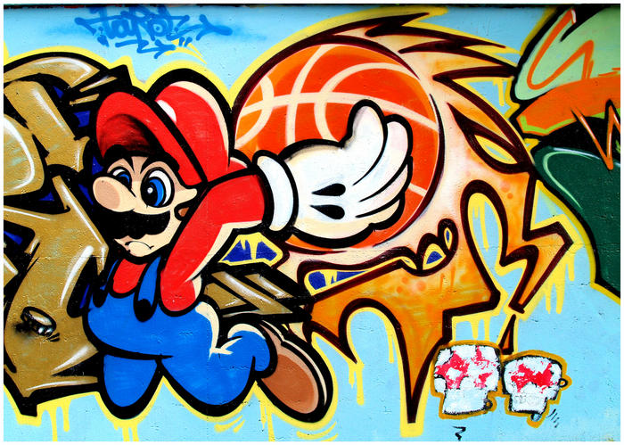 très belle photo, bonne netteté mais j'aurais laissé un peu plus d'espace à gauche pour le dunk de mario mais peut être que le tag est moins beau!!!