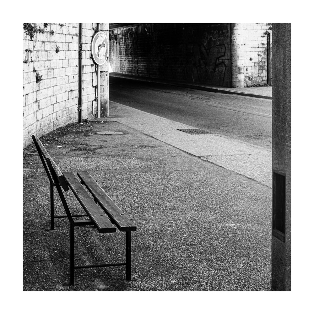 La composition est nickel avec ce tuyau noir (Haut droit) qui vient ponctuer l'image tout en jouant son rôle avec les pieds du banc.