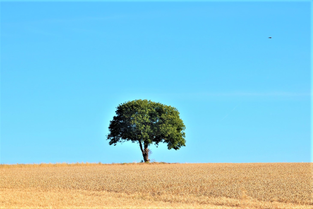 trois couleurs , deux symboles de vie .. l'arbre /l'homme et le blé/le pain /dieu . Elle est suffisamment porteuse de messages pour mériter un recadrage en gardant l'oiseau messager