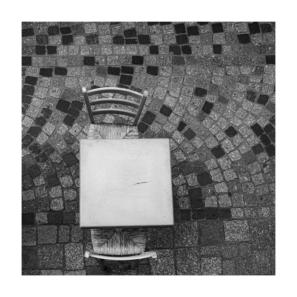 Un visuel à l'équilibre solide. Le non parallélisme de la chaise du haut donne ce petit brin de vie qui retient l'attention dans cette rigidité avérée.
