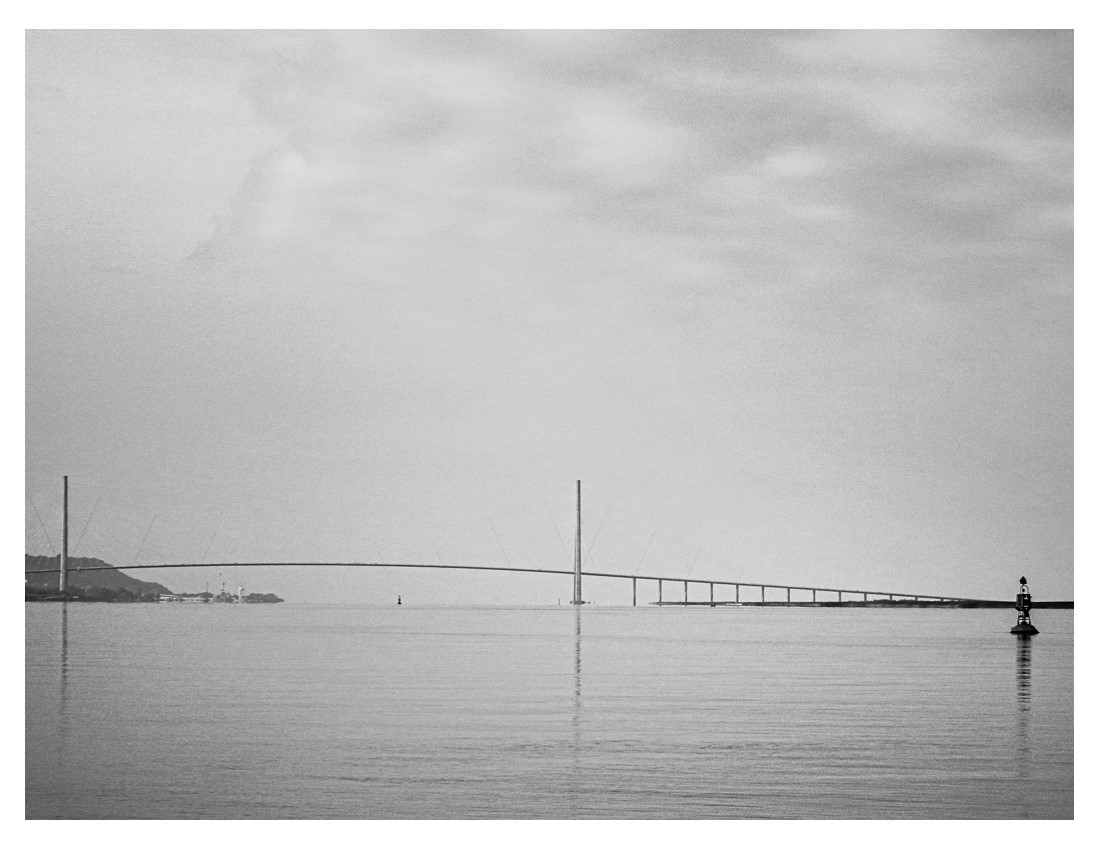 On voit à peine les filins du pont ..