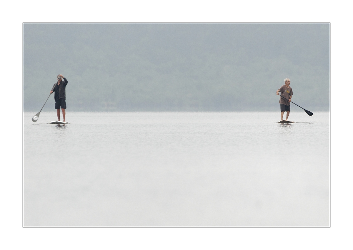 le vide entre eux est essentiel .. encore quelques coups de pagaie et ils sortiront du cadre s'en être aperçu , d'ailleurs celui de droite a déjà esquivé le mouvement ...