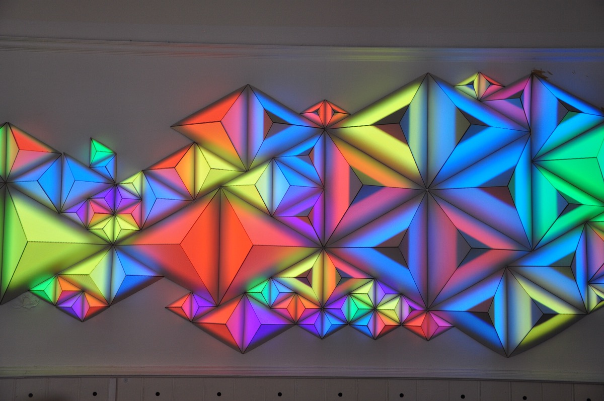 les effets symétriques soulignent les couleurs variées, et les formes de triangles enchevetrés