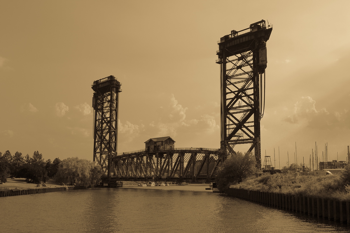 J'hesite avec l'original en couleur. La premiere evoque l'epoque de la construction du pont. La seconde parle de sa gloire aujourd'hui.