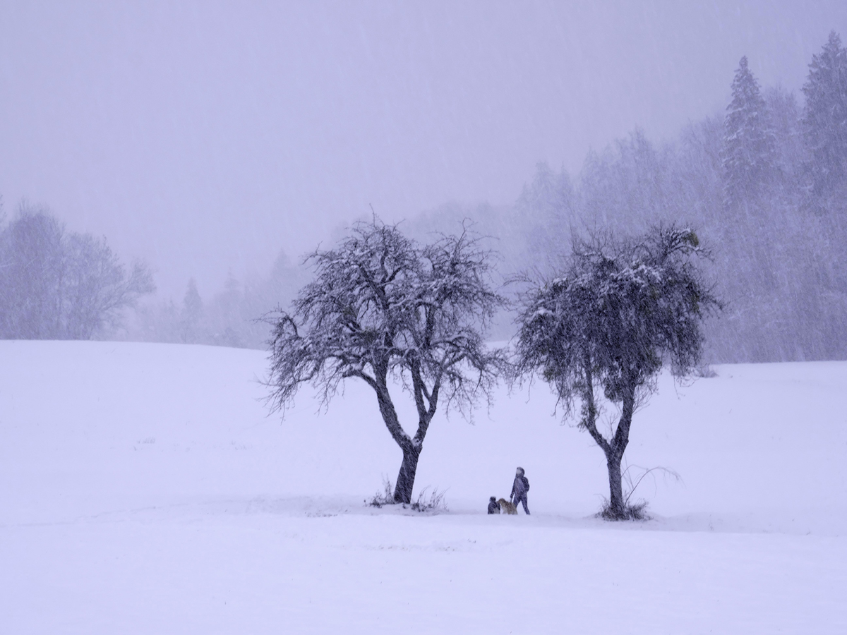 magnifiquement glacial ce rendu bleuté. Le personnage qui regarde les arbres nous incite à en faire autant. Tout est en place dans cette image pour le plaisir des yeux. Vite, je vais au coin du feu.