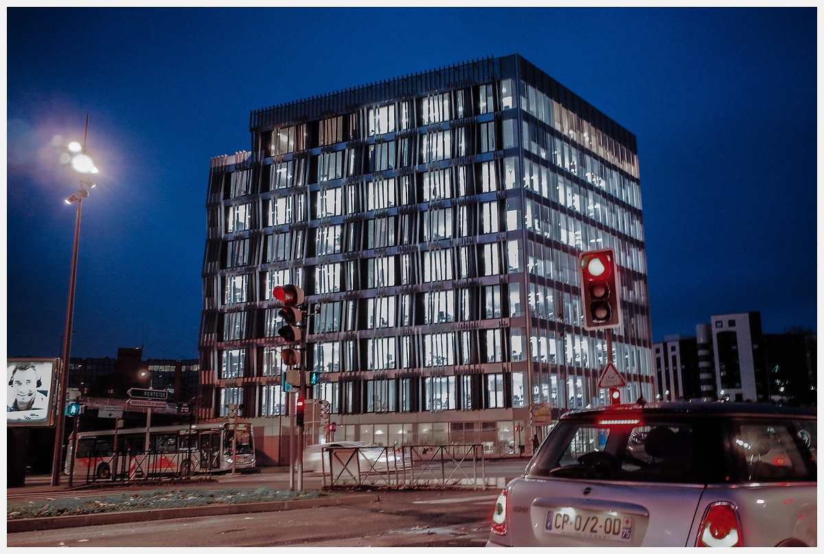 L'ambiance nocturne est parfaitement restituée pour nous faire prendre conscience du besoin d'énergie quand on voit la consommation de ce seul bâtiment. Si c'était en dehors des heures de travail, le gaspillage est au rendez-vous.