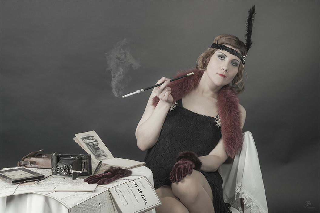 En mode vintage. Ton accessoiriste est bien fourni! J'apprécie l'ambiance old scoop aussi bien par les accessoires que par la lumière. Belle ambiance.