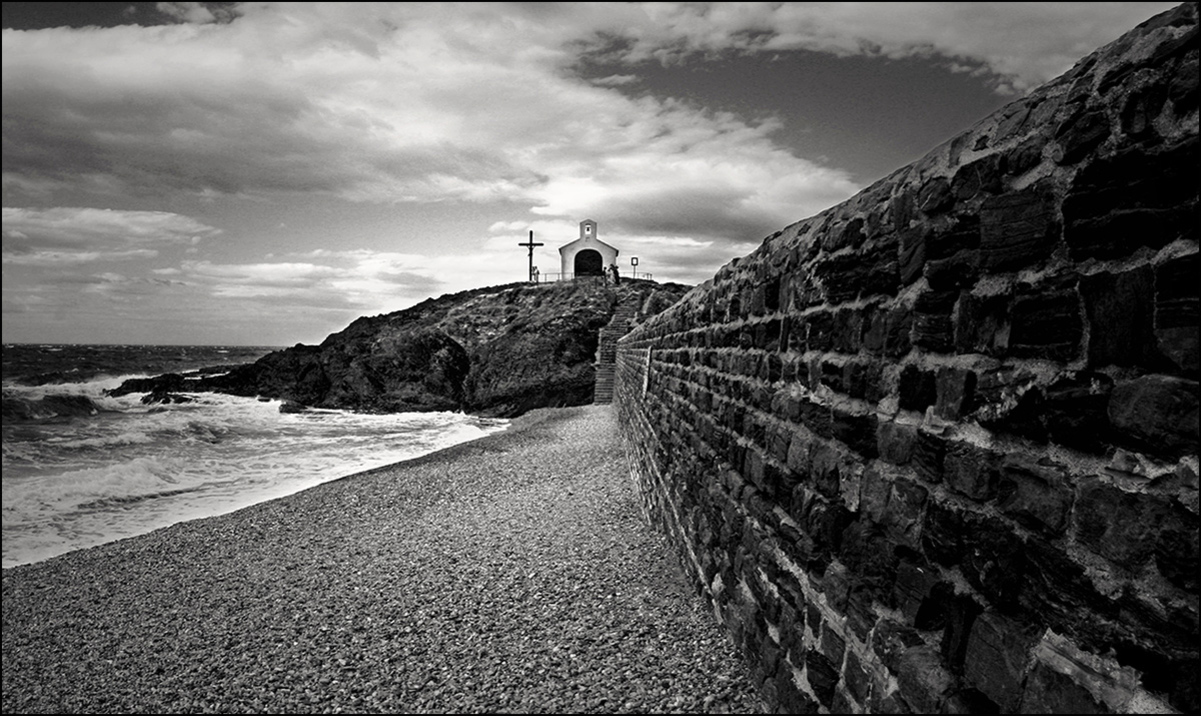 Le chemin nous mène à la chapelle. Mais ce n'est pas sans risque:trop à droite on s'écorche sur les roches, trop à gauche on se noie... Comment interpréter???