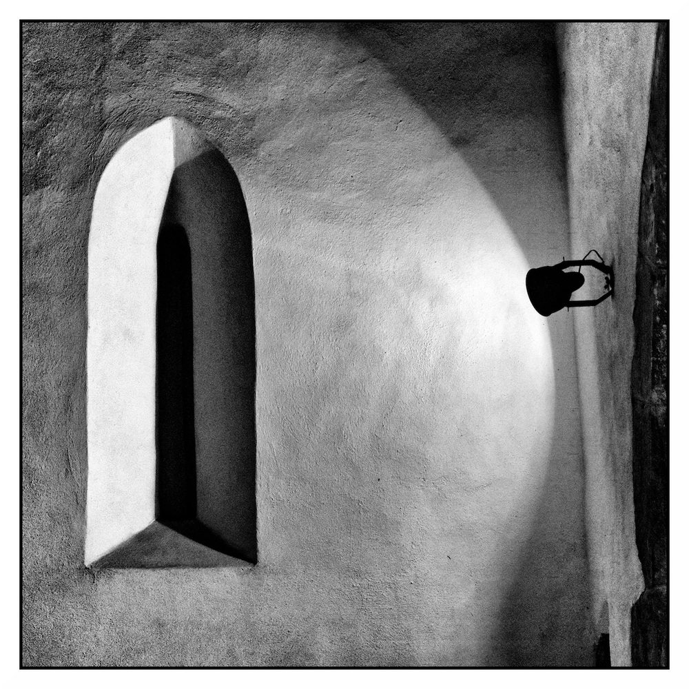 On sent les aspérités du mur sous les doigts. Tres beau jeu de lumiere en NB.