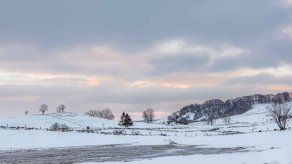 magnifique image de saison, perso je couperai la moitié du ciel gris sans rien en haut pour un format plus panoramique, sympa ces arbres sur la ligne de crète , belle ambiance ,