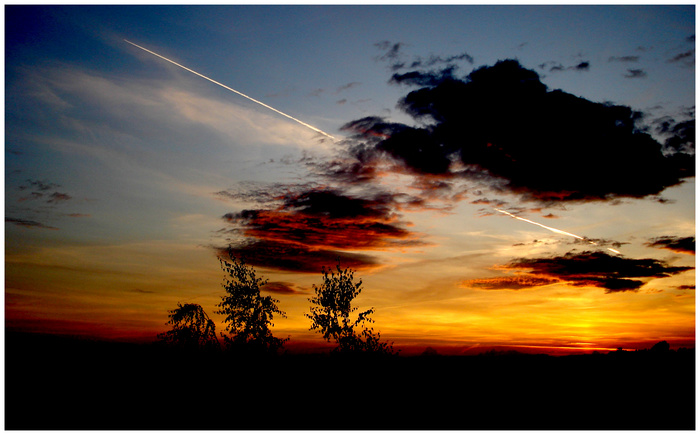 Un beau couché de soleil. Le gros nuage est trop sombre pour moi, mais je pense que l'appareil y est pour quelque chose ...