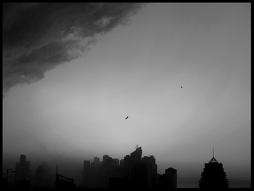 Voila une photo que j'ai pris depuis mon appartement dans la tour vous savez a Dubai.. cette photo elle est bizarre.ce qui vole ce sont des papiers car l'orage arrivait effectivement si on regarde on peut croire qu'elle penche mais c'est étrange, regardez la tour tout a droite elle est parfaitement droite...