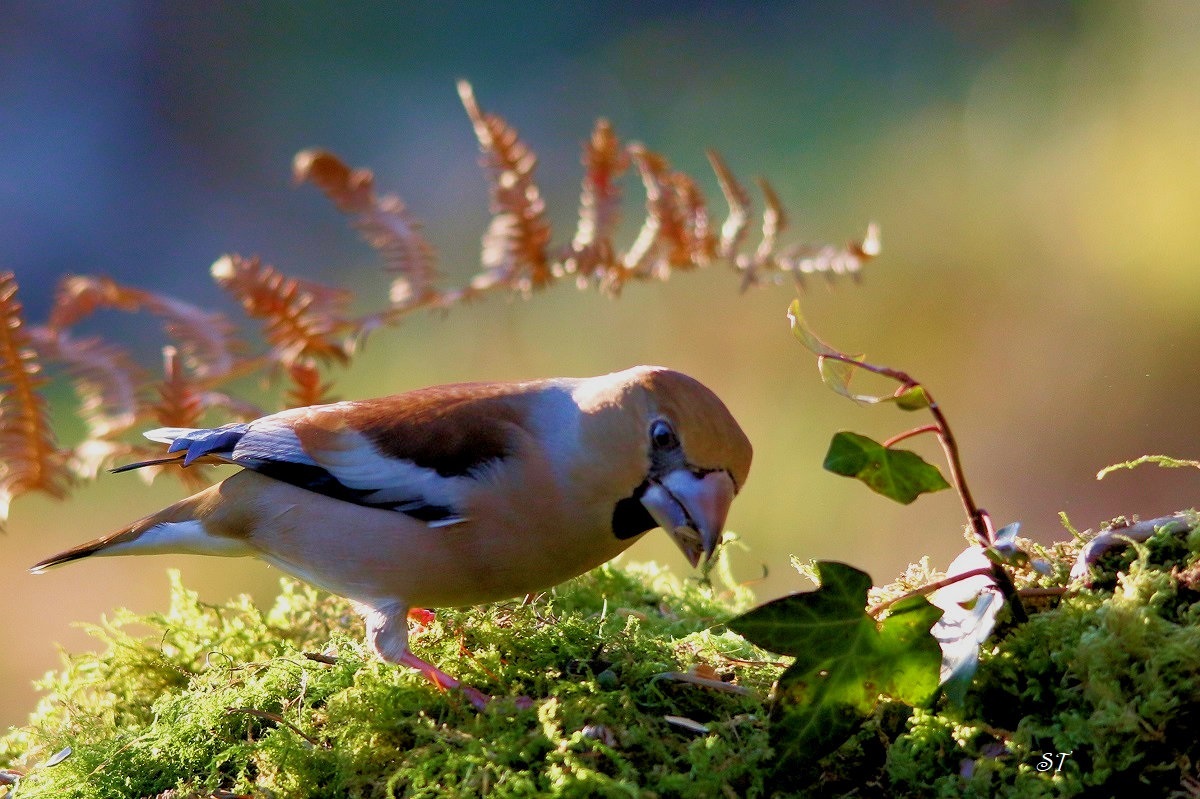 Le Gros - bec casse - noyaux est venu me rendre visite en cette magnifique journée où la lumière permettait de jouer avec les arrières- plans.