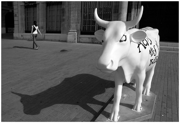 Penché volontaire, Brinic, pour donner une fuite dynamique vers la gauche (l'originale penchait même beaucoup plus, mais j'ai pas osé garder !). Série de photos prises ce matin à Marseille, où 60 vaches environ arpentent le bitume ! Merci pour vos coms à tous, sur celle-ci et sur les autres. Amts.