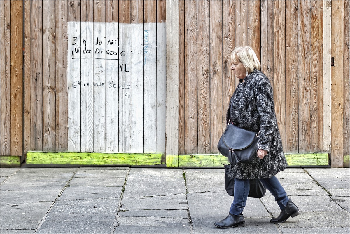 Belle scène de rue avec cette association planches/dalles avec un plus pour la planche vermoulue et le graffiti