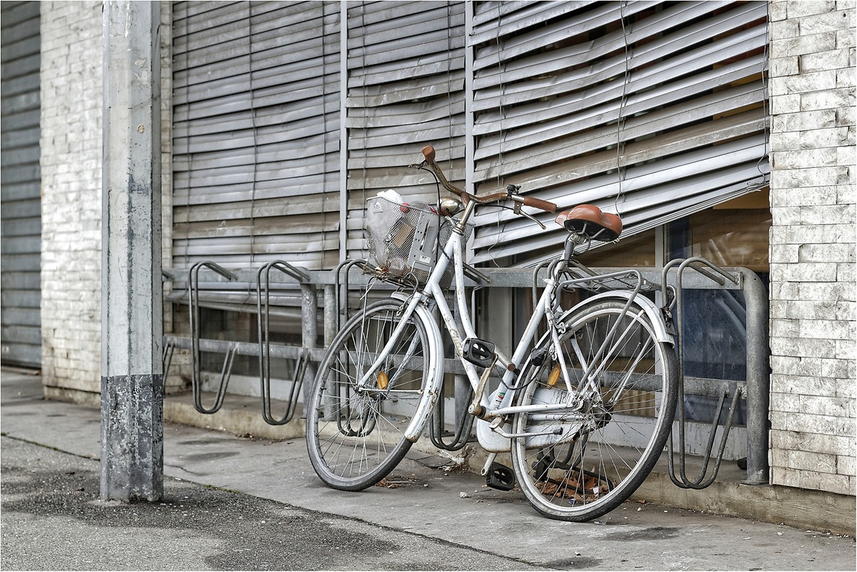 Les similitudes entre la teinte et l'état du vélo et de son environnement sont vraiment bien vues.