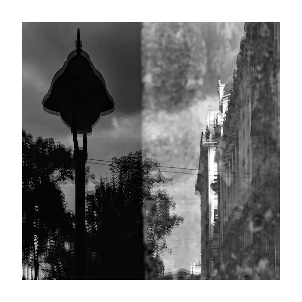 J'aime beaucoup Réel/irréel, sombre/lumineux, le lampadaire dans le noir et le béton dans la lumière .... 2 visions à travers une même vitre ...