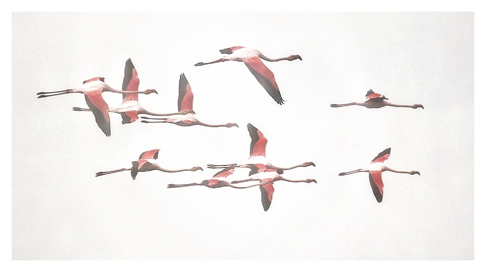 Dans cette version, je me demande si la superposition des flamants ne me gêne pas moins car l'image va presque vers quelques chose d'abstrait...