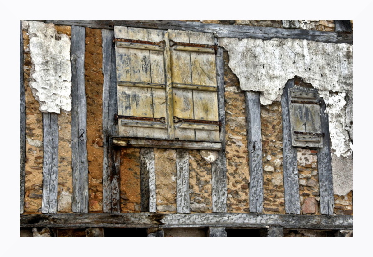 J'aime beaucoup ce cadrage serré, la succession de poutres verticales encore à peine protégées par deux pauvres lambeaux de crépis et ces deux fenêtres dont on ignore si elles s'ouvrent encore de temps en temps et sur quelle existence...