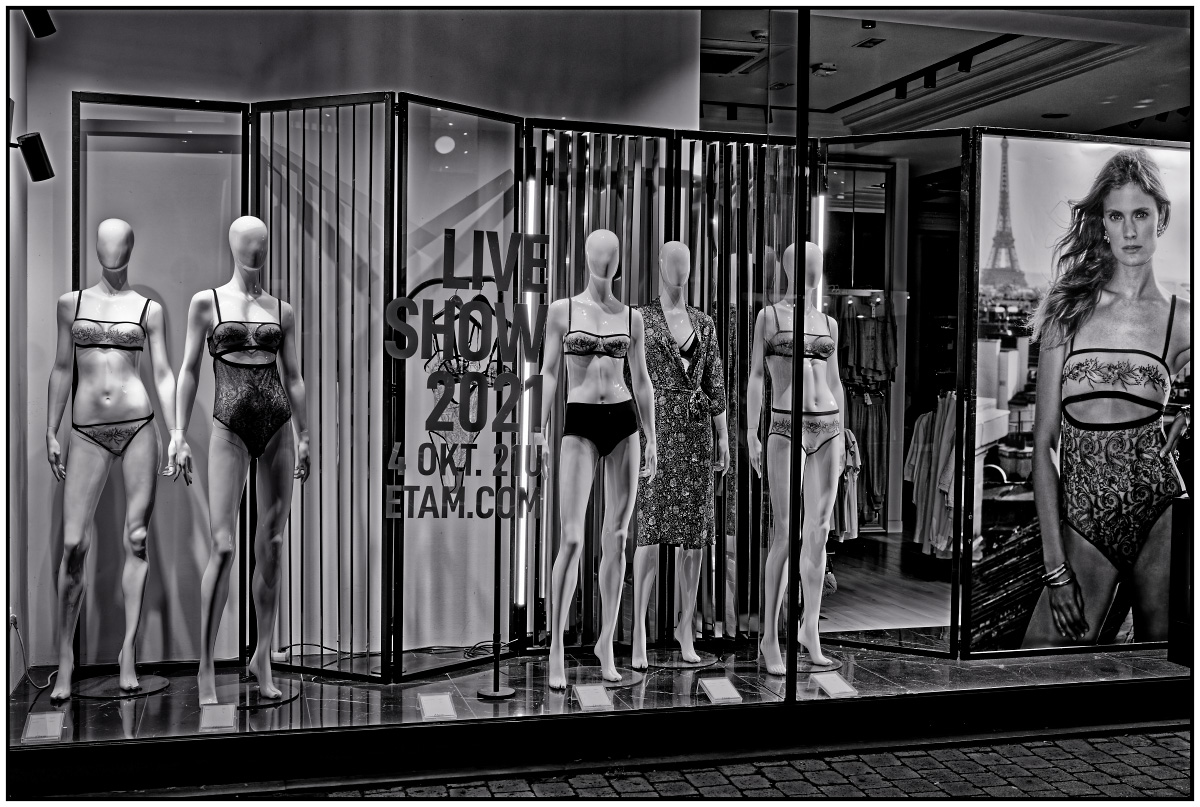 Composition peut-être un peu serrée à droite pour moi mais j'aime bien l'angle de prise de vue qui lui donne de la dynamique et le triangle de pavés qui laisse un espoir d'évasion à ces prisonnières...