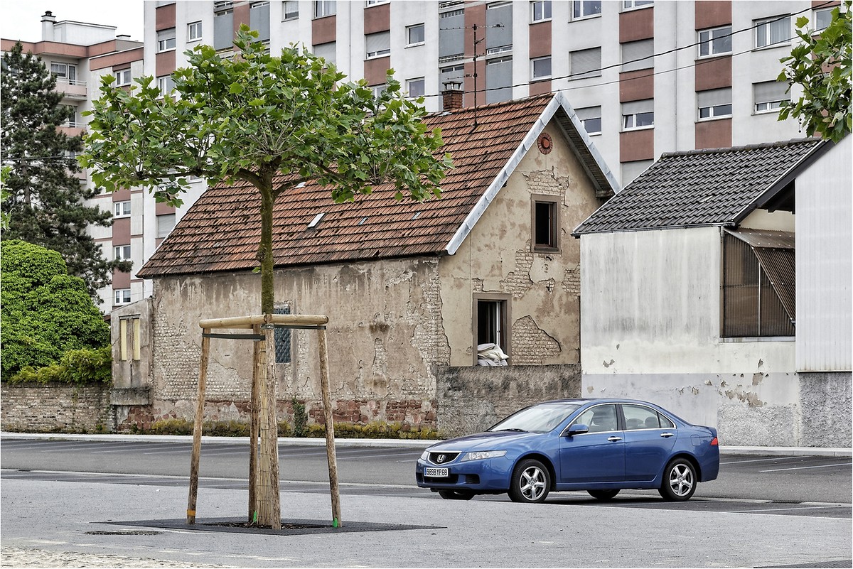 bien vu , et ce pauvre arbre prisonnier qui trône au milieu ? une image hétéroclite sympa ,