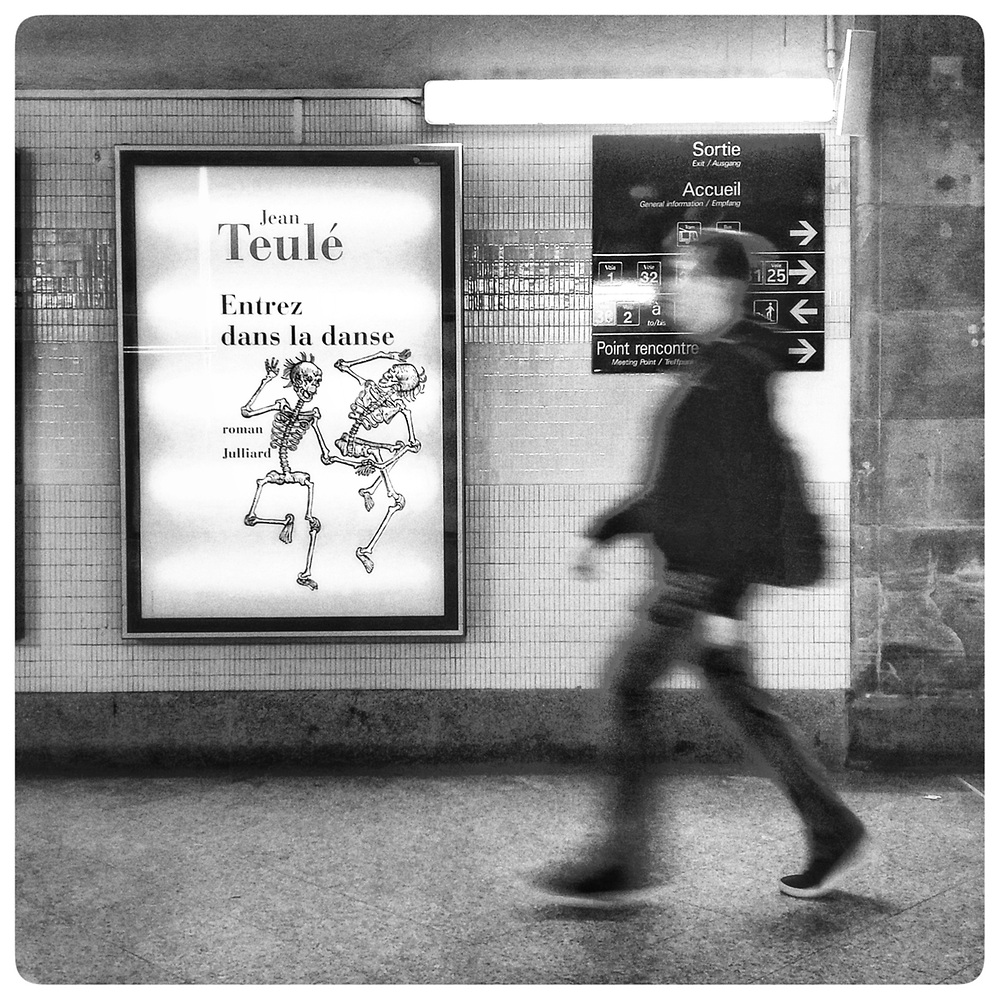 Le flou imprime à la démarche du passant un mouvement un peu dansant qui répond bien à l'affiche.