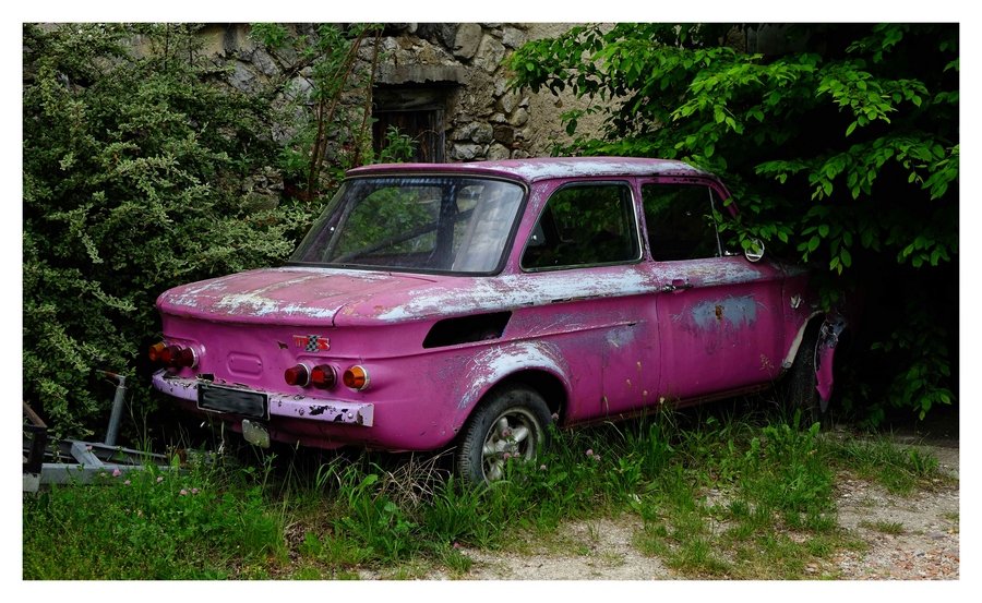 C'est en tout cas une belle photo dont les teintes et la lumière vont - malheureusement - bien avec l'état de l'auto...