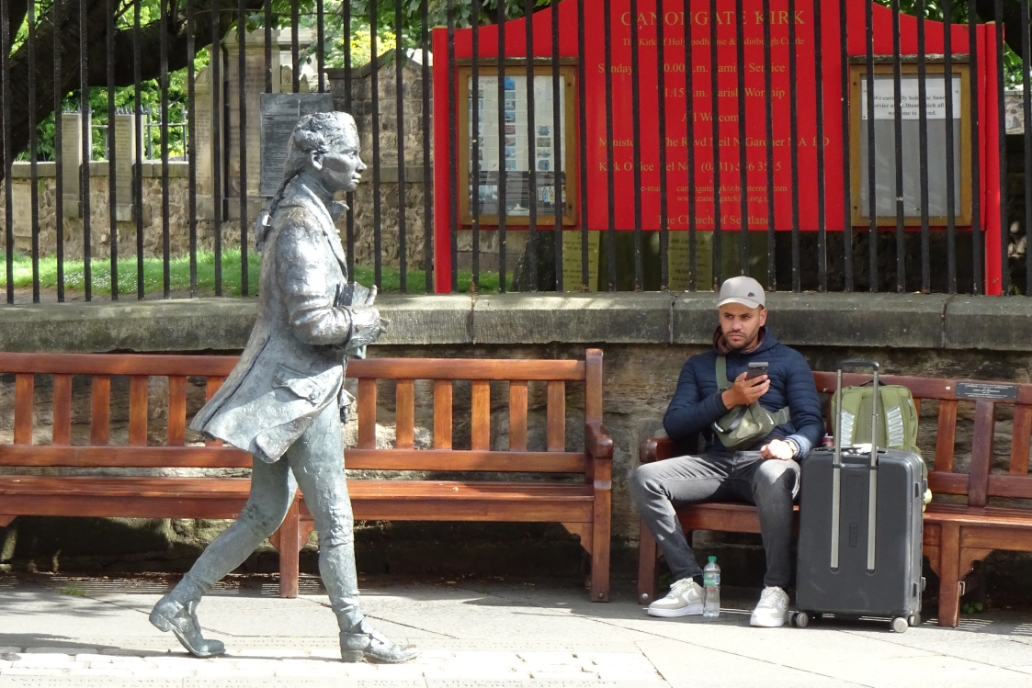 '' le petit coup d'oeil dans la direction du marcheur '' sculpture '' est bien vue et donne l'impression que le type le regarde passer sous son nez ''
