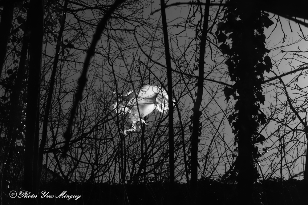 J'aime cette figure très blanche et lumineuse contrastant dans ce n&b sombre et inquiétant.