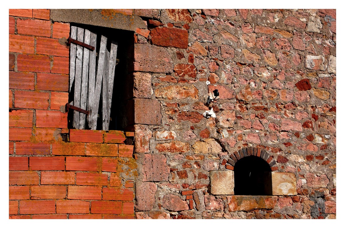 bien vu , un volet qui a du vécu , texture du vieux mur bien rendue ,