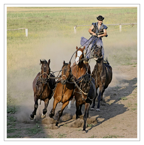 Beau piqué, beau rendu ! J'aime bien ce nuage de poussière et les sabots des chevaux pénétrant le sol C'est du plus bel effet