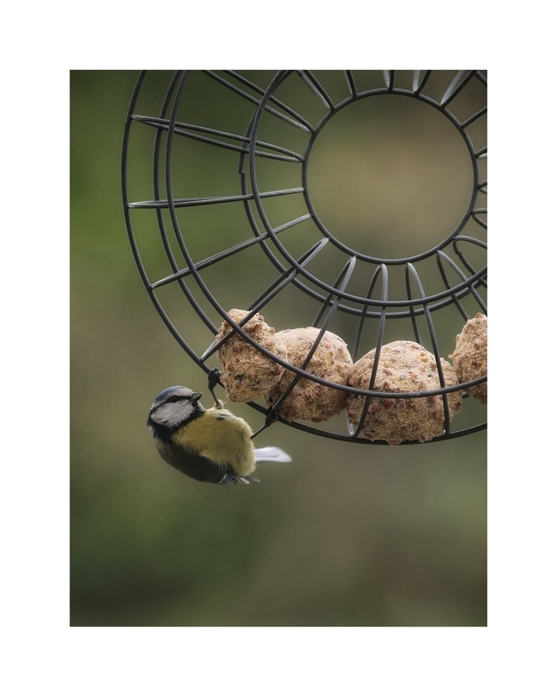 un cadrage bien soigné et qu'importe le numéro qui va sortir cette mésange a gagné la boule qui va l'engraisser!