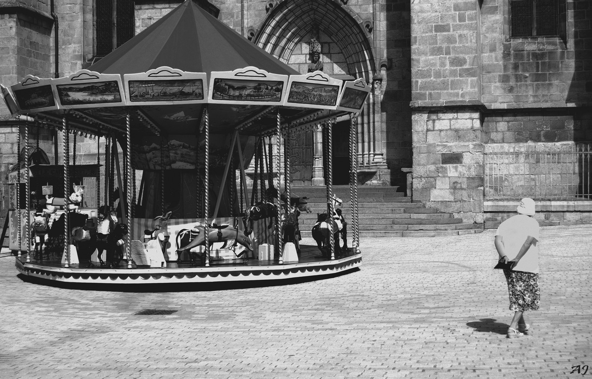 une belle compo et une scène de rue intéressante , mais pourquoi en NB , un manège est si joli en couleurs ?? ,
