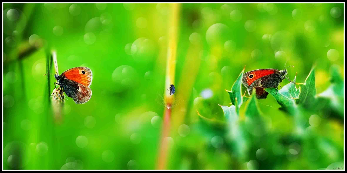 L'image est un peu difficile à lire, les yeux ne cessent de naviguer de gauche et de droite, un peu d'ailleurs comme le papillon qui butine de fleur en fleur, ne sachant quel élément retenir, mais n'en est pas moins intéressante.