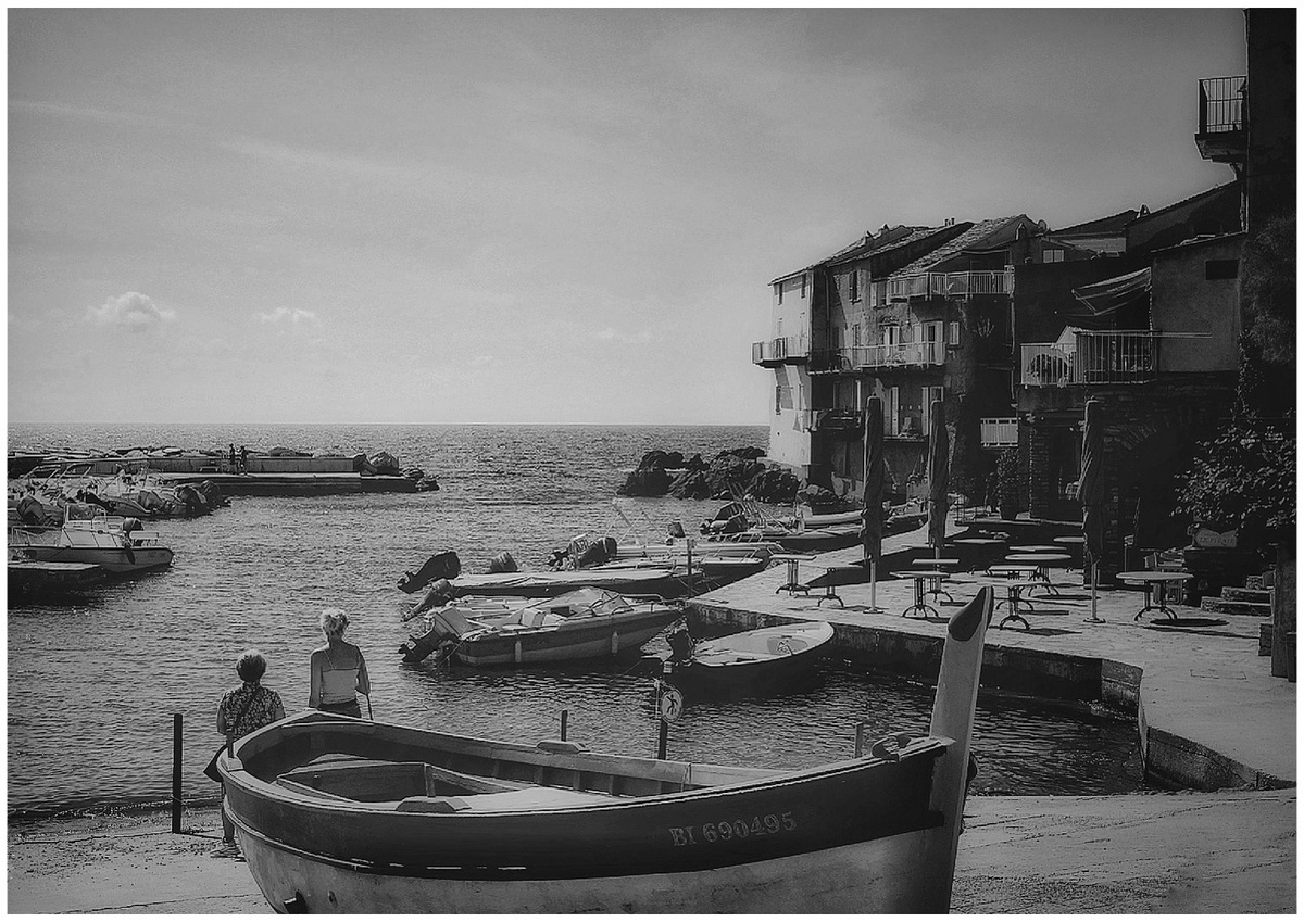 Un petit port paisible du cap corse , un plus pour les 2 personnages en bas qui ajoutent une note vivante ...