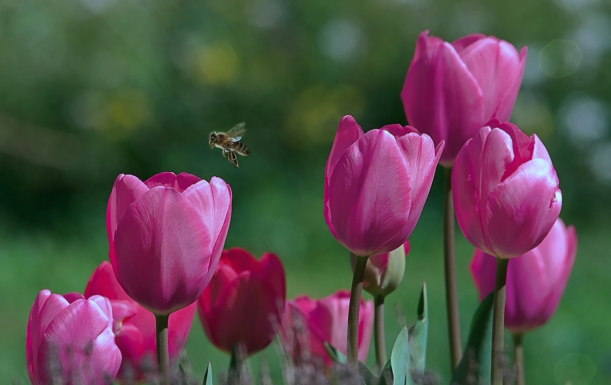 Captée juste au bon moment en plein vol,des tulipes bien nettes et un bokeh au top !
