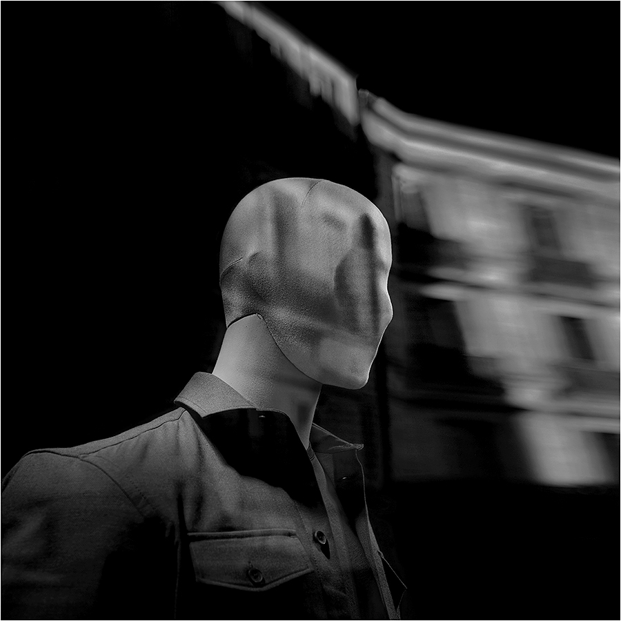 Un simple mannequin en vitrine avec les reflets d'immeubles... j'ai étiré les bords droit et gauche ce qui accentue le flou de l'ouverture 2,8 et peut créer un effet de filé !