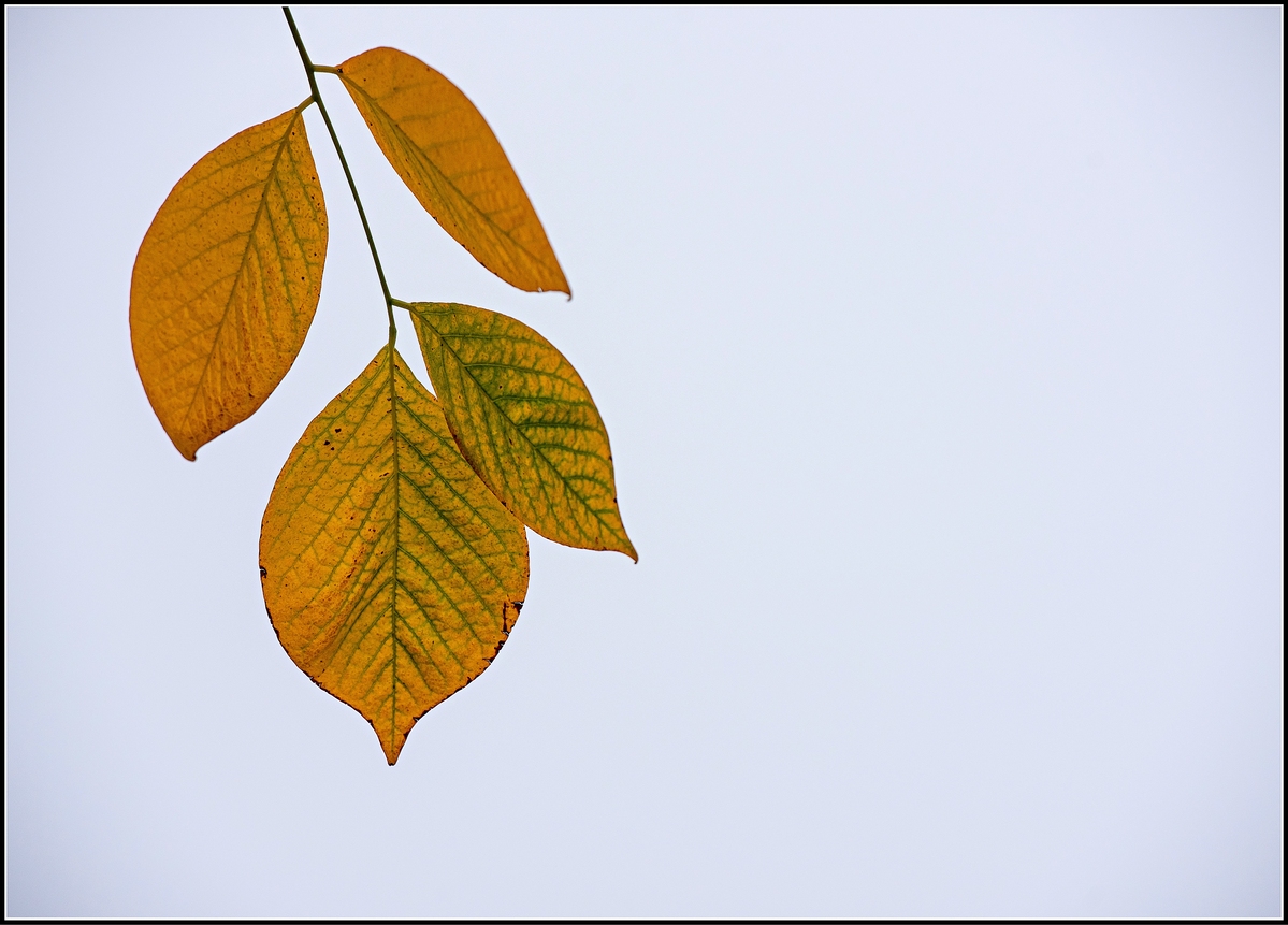 Pourquoi ne pas opter pour un fond vraiment blanc et plus lumineux ? Les feuilles seraient bien plus mises en valeur. j'aurais également préféré une composition en diagonale.
