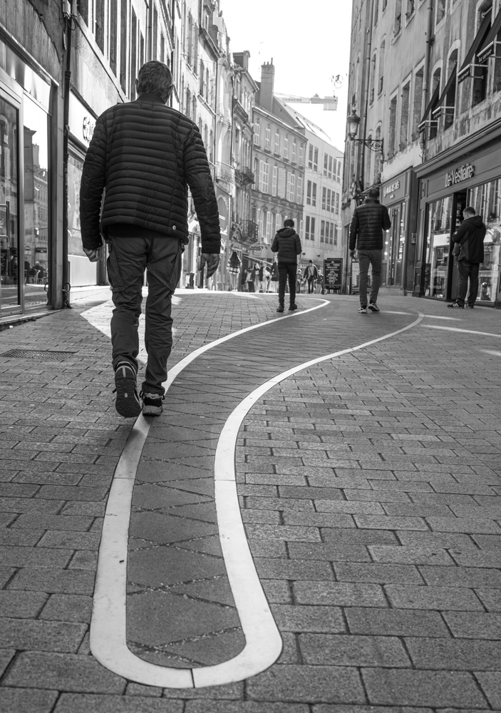 C'est bien vu ces trois passants avec le même code vestimentaire comme des pions dans un jeu.