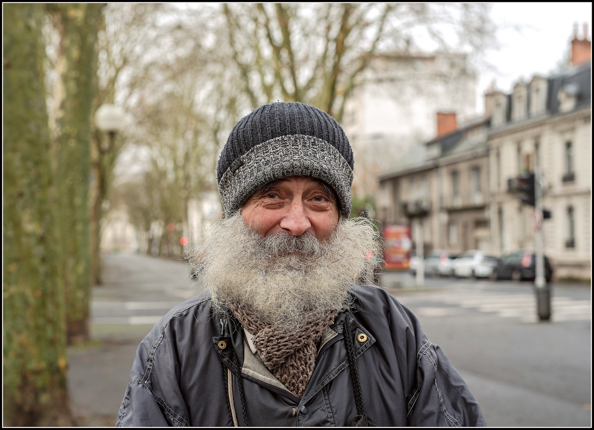 Très très beau portrait, très expressif et sympathique. un détail, mais dans le fond, le panneau publicitaire attire un peu l'oeil et je tenterais sans doute une légère diminution locale et partielle des rouges. Très réussi en tout cas.