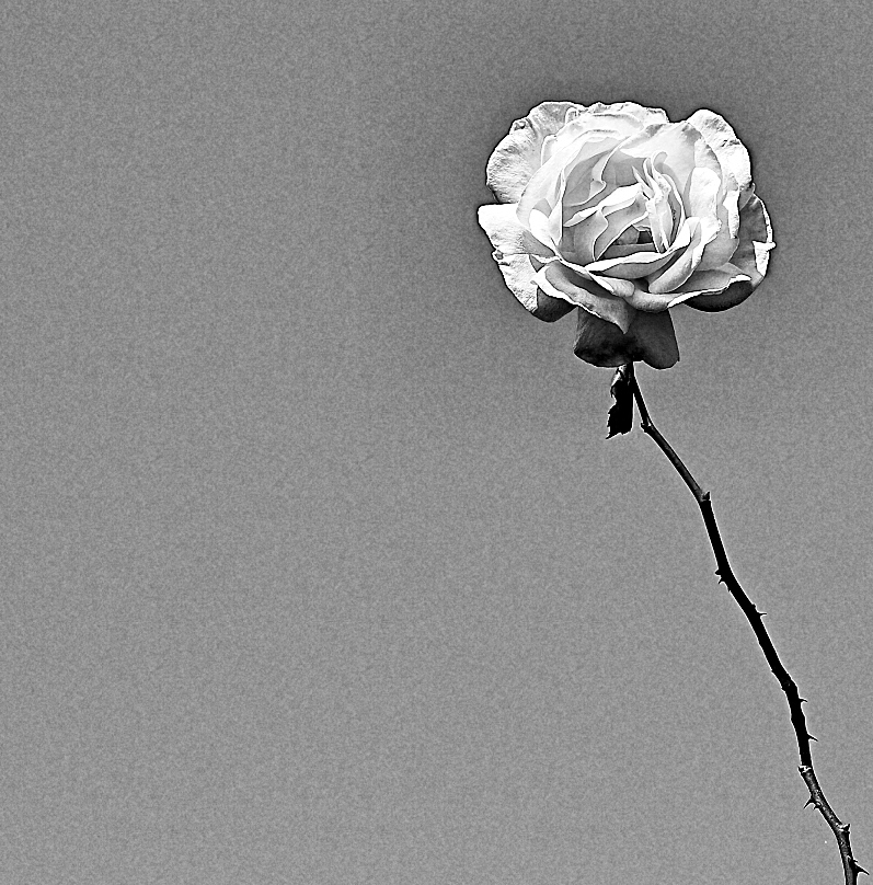 Mais le n&b souffre d'une zone centrale trop surexposée qui supprime les détails et il y a une ligne blanche le long de la tige, sans doute des curseurs trop poussés.