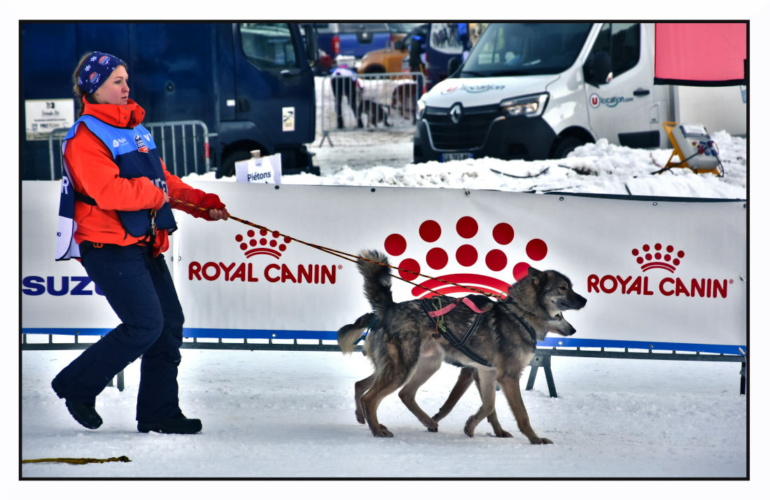 Je n'accroche pas, ni au pubs, ni aux camions dans le fond. L'attitude de la maitre chien est bien saisie par contre.