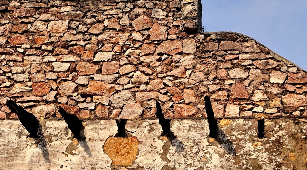 C'est une image qui me plait bien, colorimétrie, texture de la pierre, écaillement du mur .. Dommage que les morceaux de poutres brulées manquent de résolution .. Trop de lumière ?