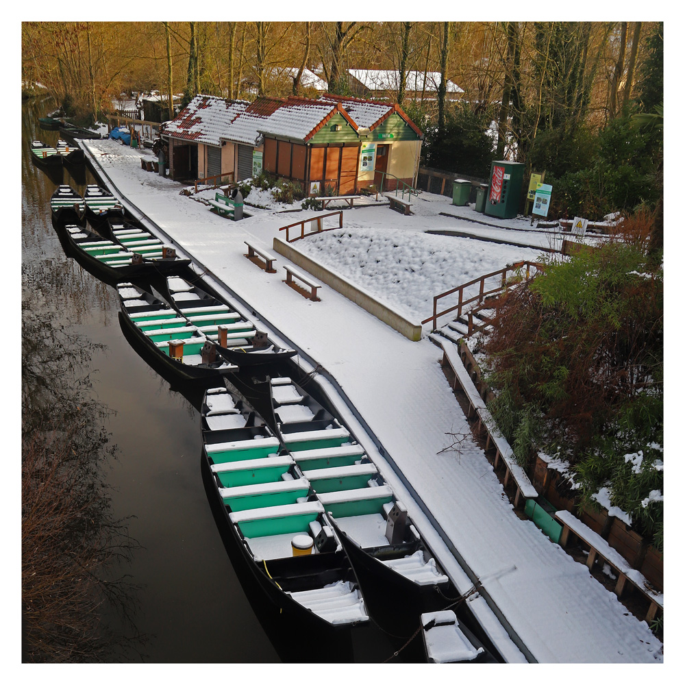 une photo d'hiver intéressante , mais je trouve que les bateaux prennent trop d'importance dans ce paysage ? , perso je couperai en bas juste a l'arrière des premiers bateaux ;