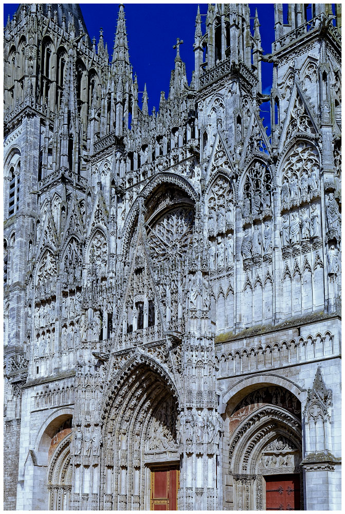 Le point de vue de Claude Monet est l'angle S-O de la place de la cathédrale, sur 16 de ses 20 toiles sur le même sujet : c'est ce que je voulais exprimer dans le titre de ma photo qui est presque le contraire de l'impressionisme, évidemment.
