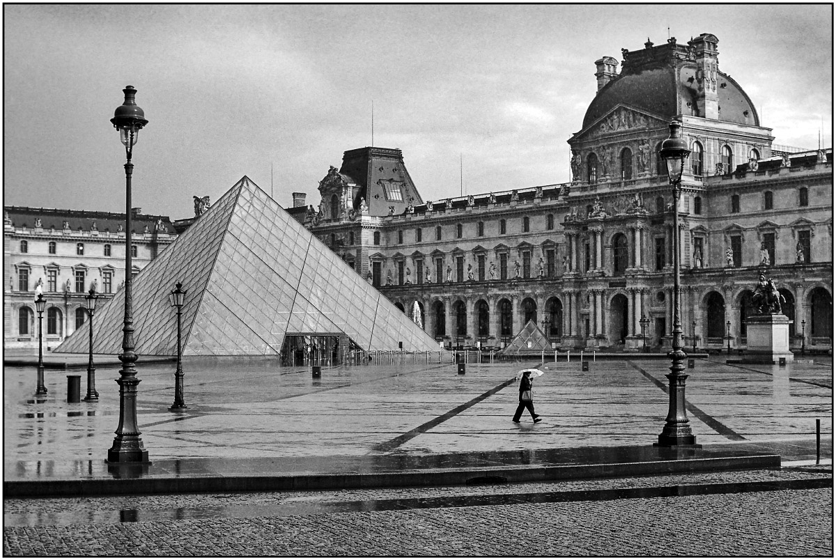La Cour Napoléon sous la pluie (mai 1999)