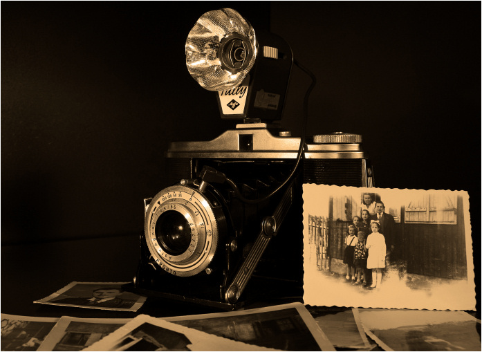 je vien d'acheté un vieux boitier à souflet et j'avai la meme idée avec mes vieilles photos de mon arrierre grand perre et mon grand perre ! !