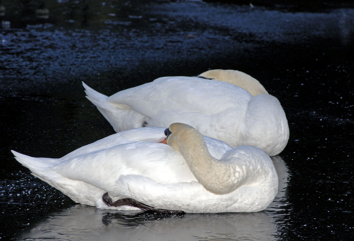l'attitude des cygnes est interessante mais le cardrage un poil serré, j'aurai aimer voir plus ce qui doit etre un lac gelé.